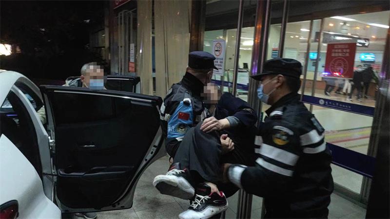 △ 骑警将老人 " 公主抱 " 进医院治疗